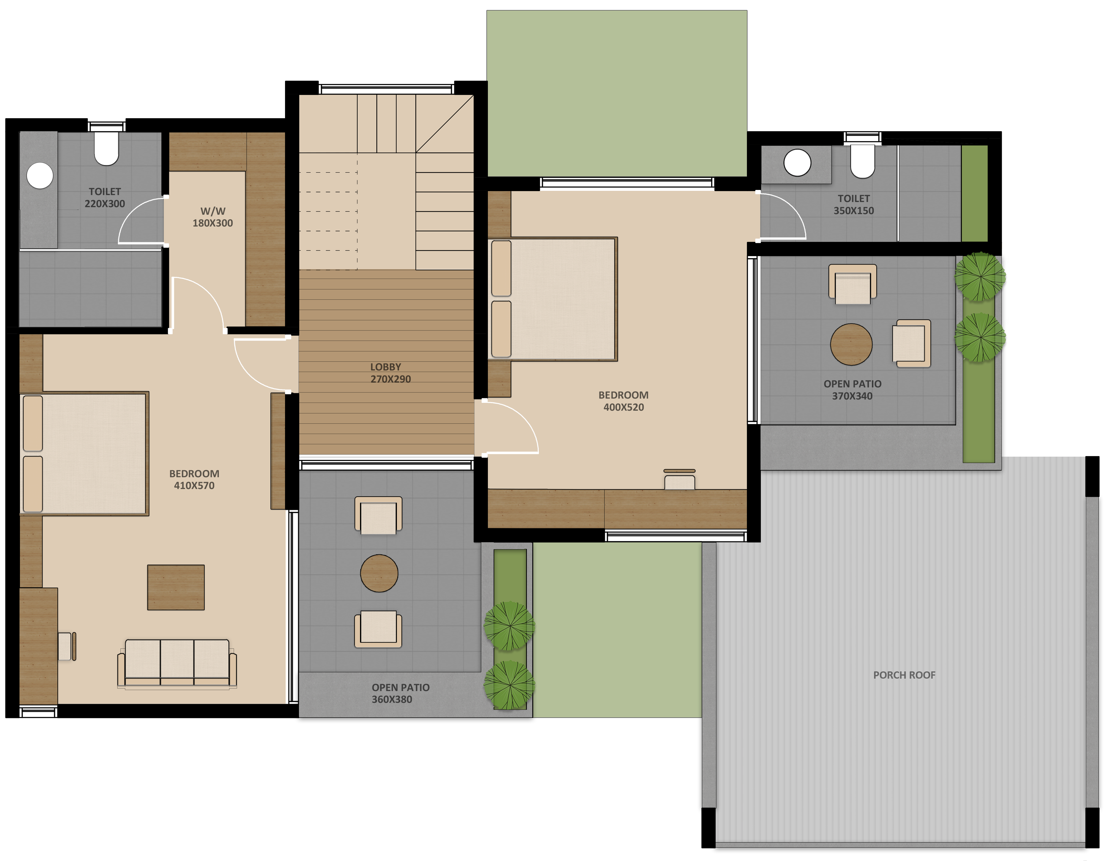 - Master Bed & Lobbies: Laminated Wooden Flooring